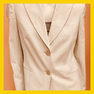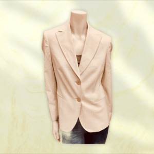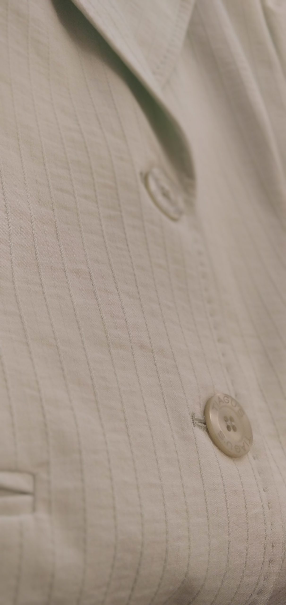 Blazer verde agua con rayas bordadas y falsos bolsillos. Composición: 97% Algodón, 3% Elastano. Composición Forro: 58% Viscosa, 42% Acetato. No lavar.
