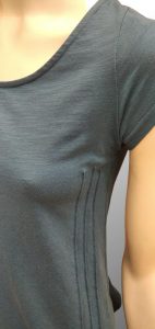 Camiseta básica con cuello redondo y detalle de costuras laterales en color azul.