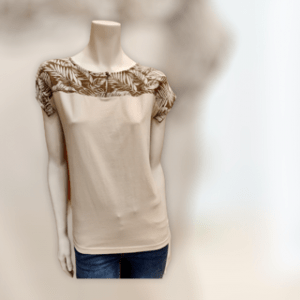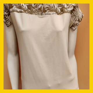 Camiseta algodón color arena detalle estampado cuello