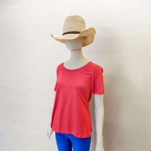 Camiseta básica en color rosa chicle , de manga corta y cuello redondo.