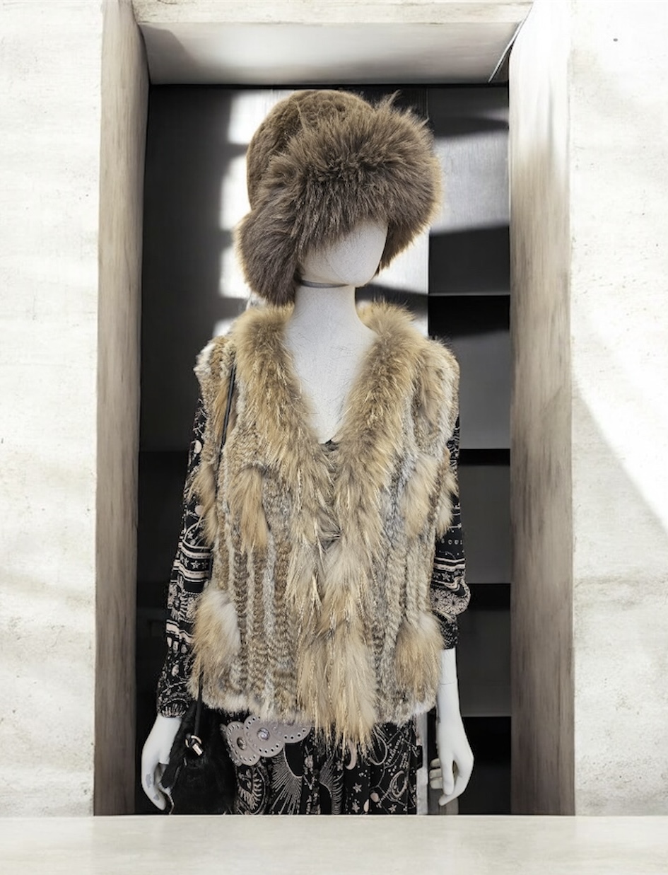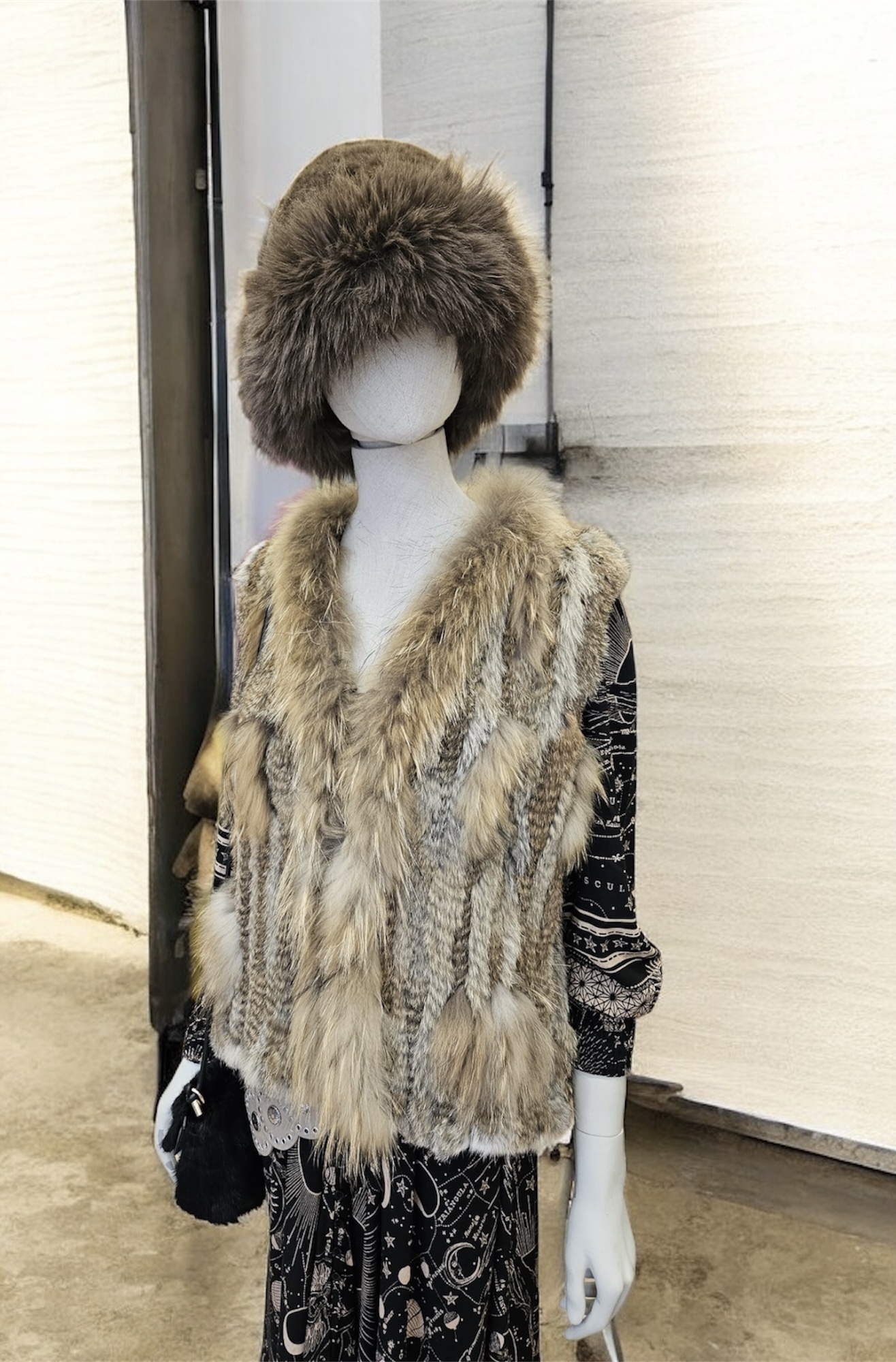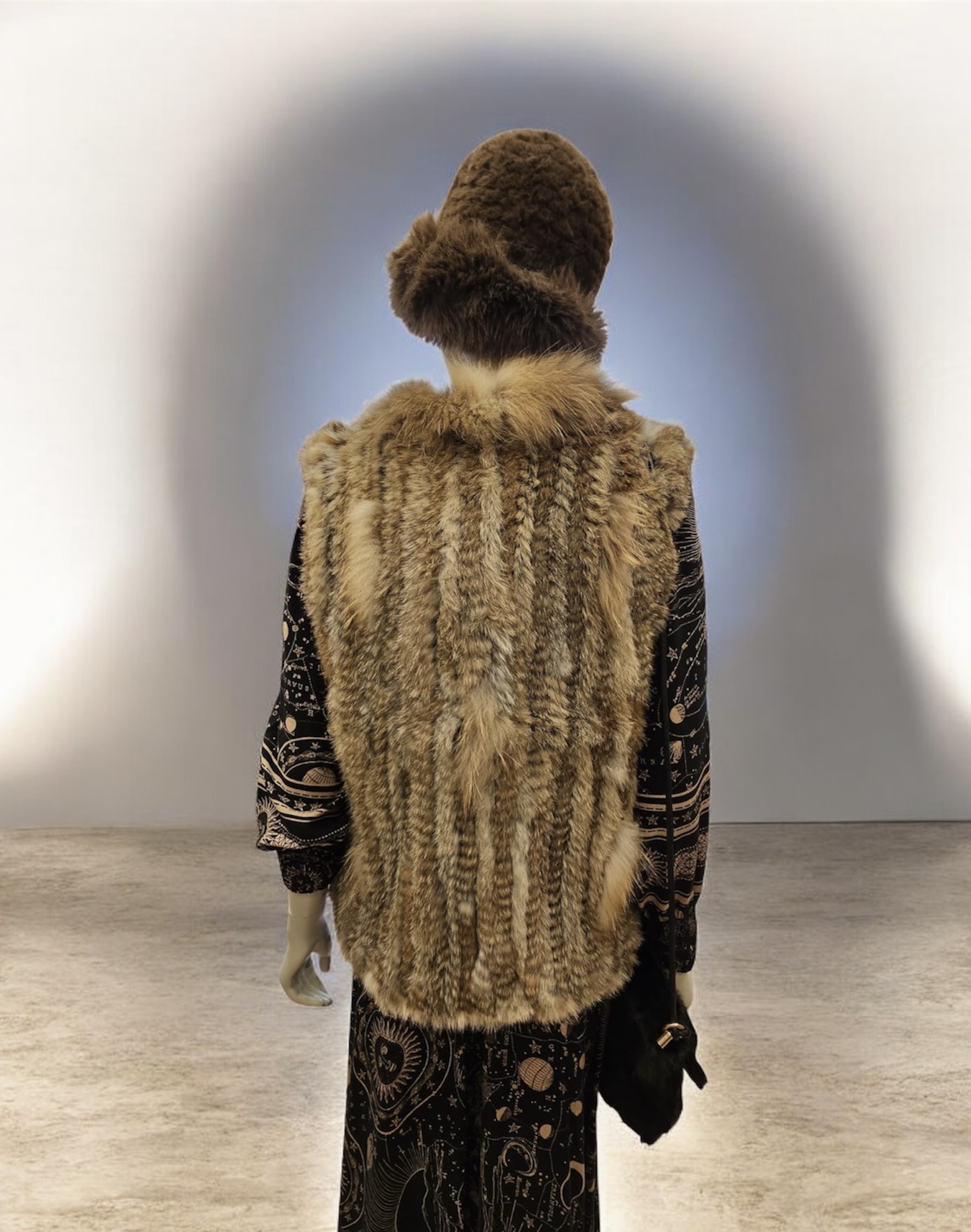 Precioso y calentito chaleco de piel de conejo y marmota en tono gris y talla L.