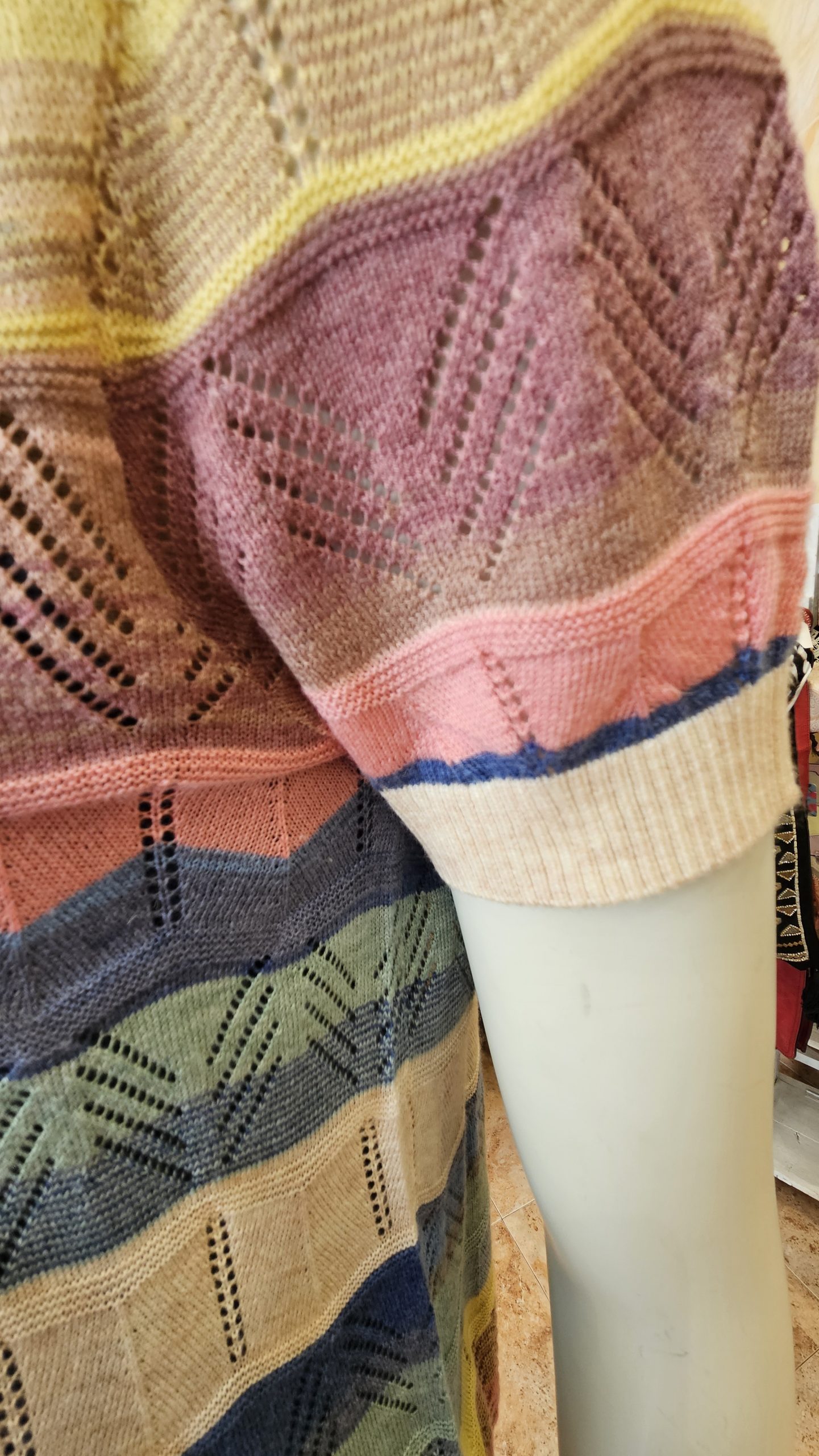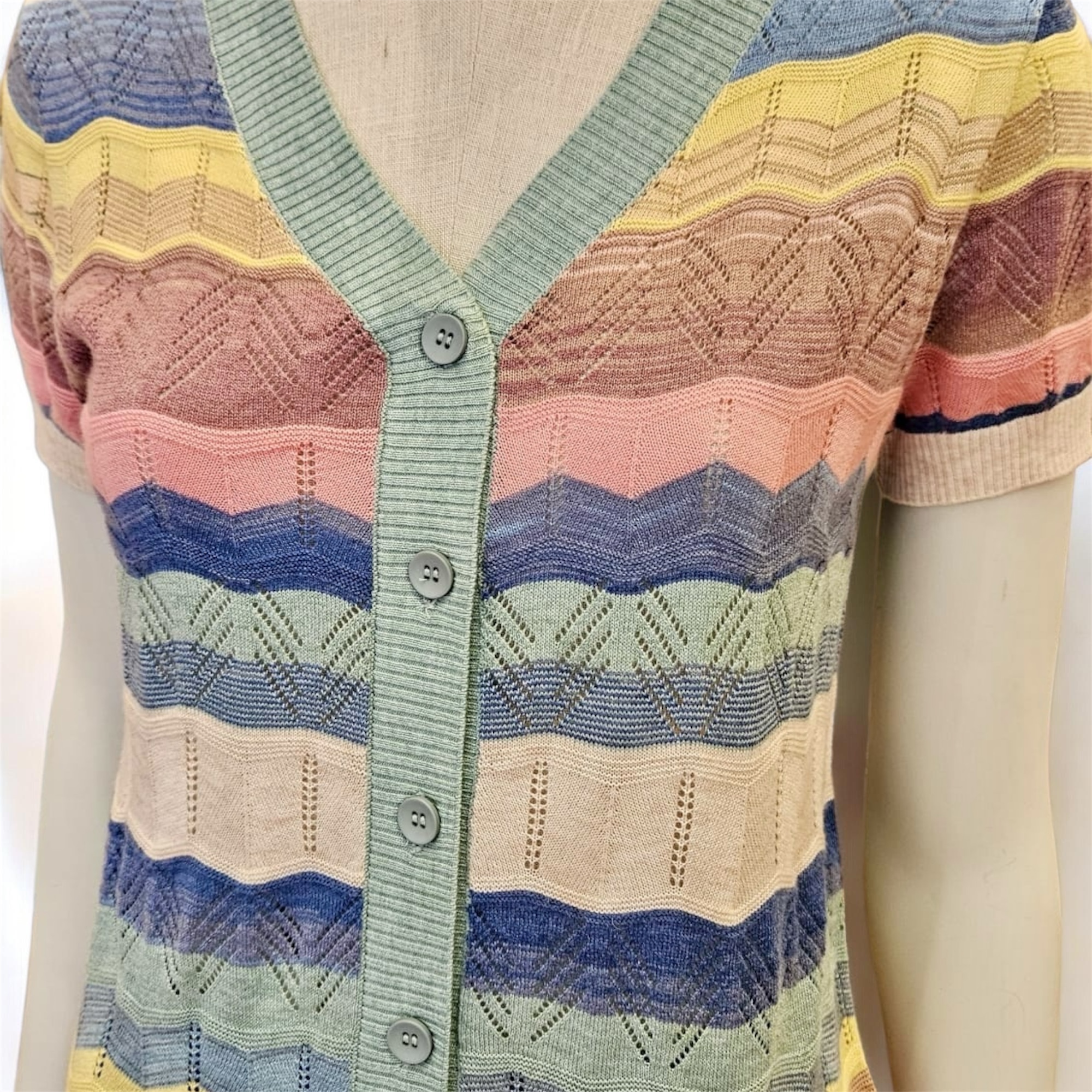 Chaquetita a rayas de colores con manga corta .