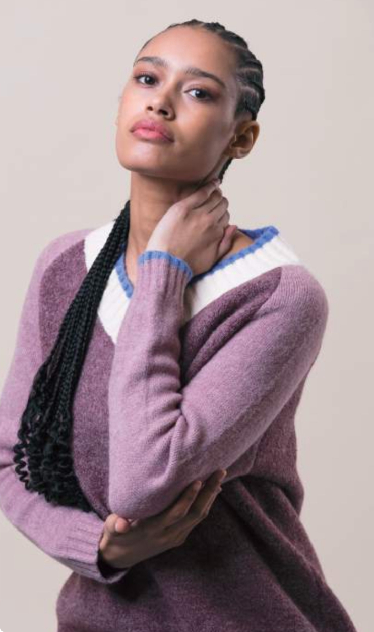 Jersey amplio con cuello en pico en tonos malva.