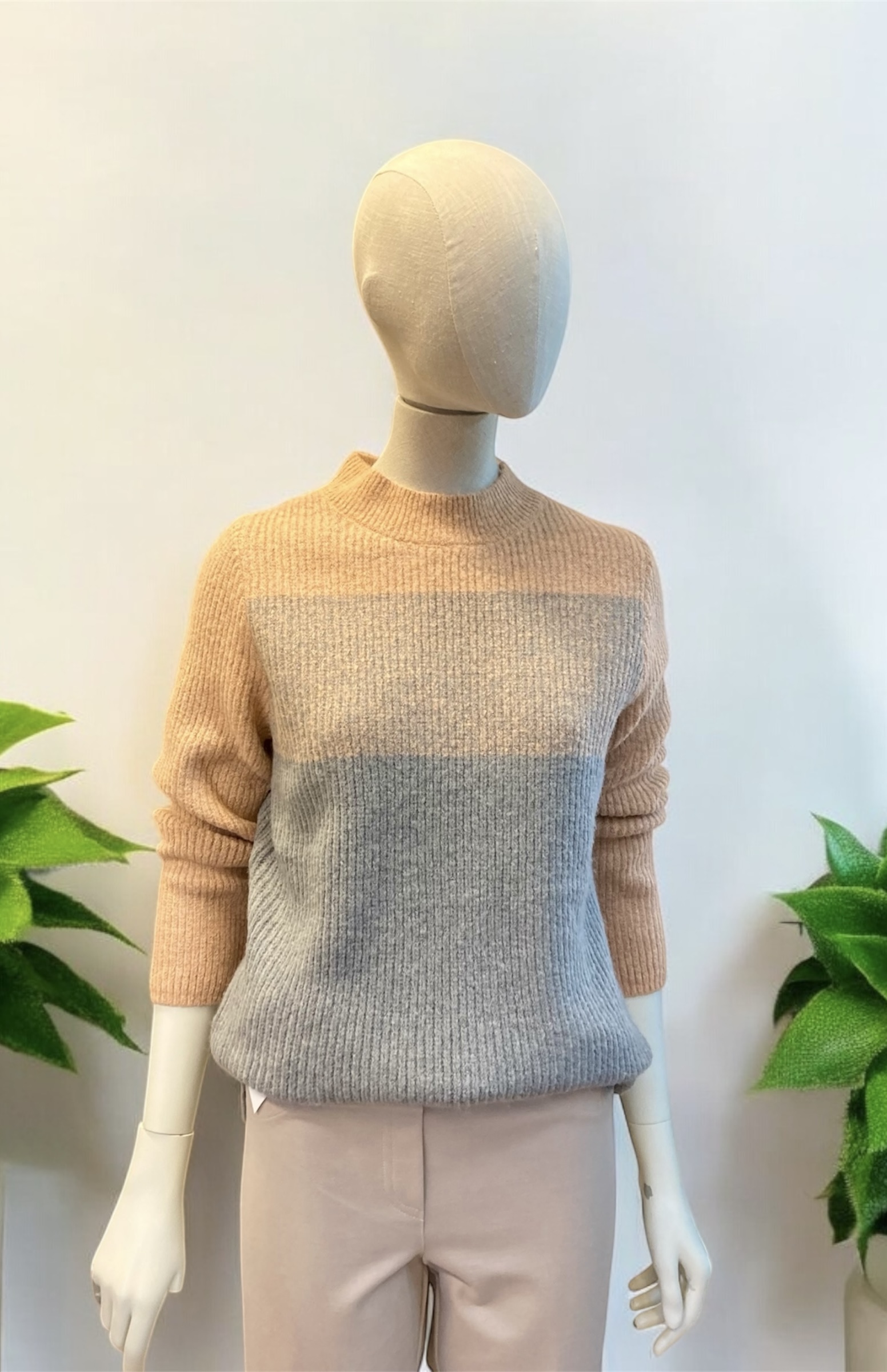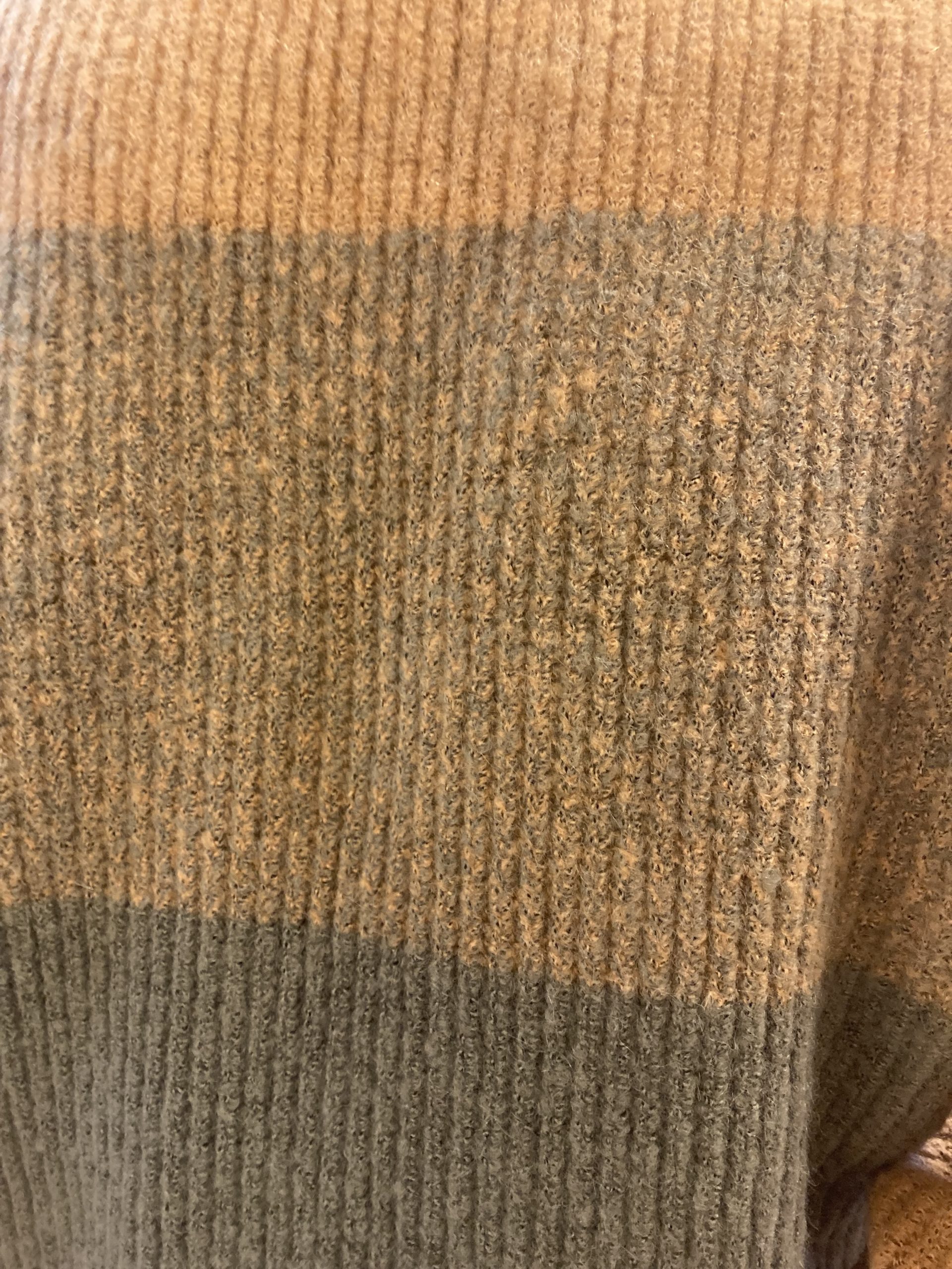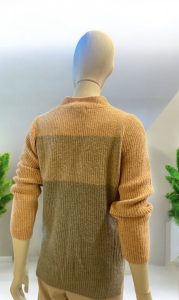 Sueter en tonos naranjas efecto degradee y cuello perkins. Composición 52% acrilico, 30% polidamida, 15% poliestes y 3% elastán. Lavado a 30º