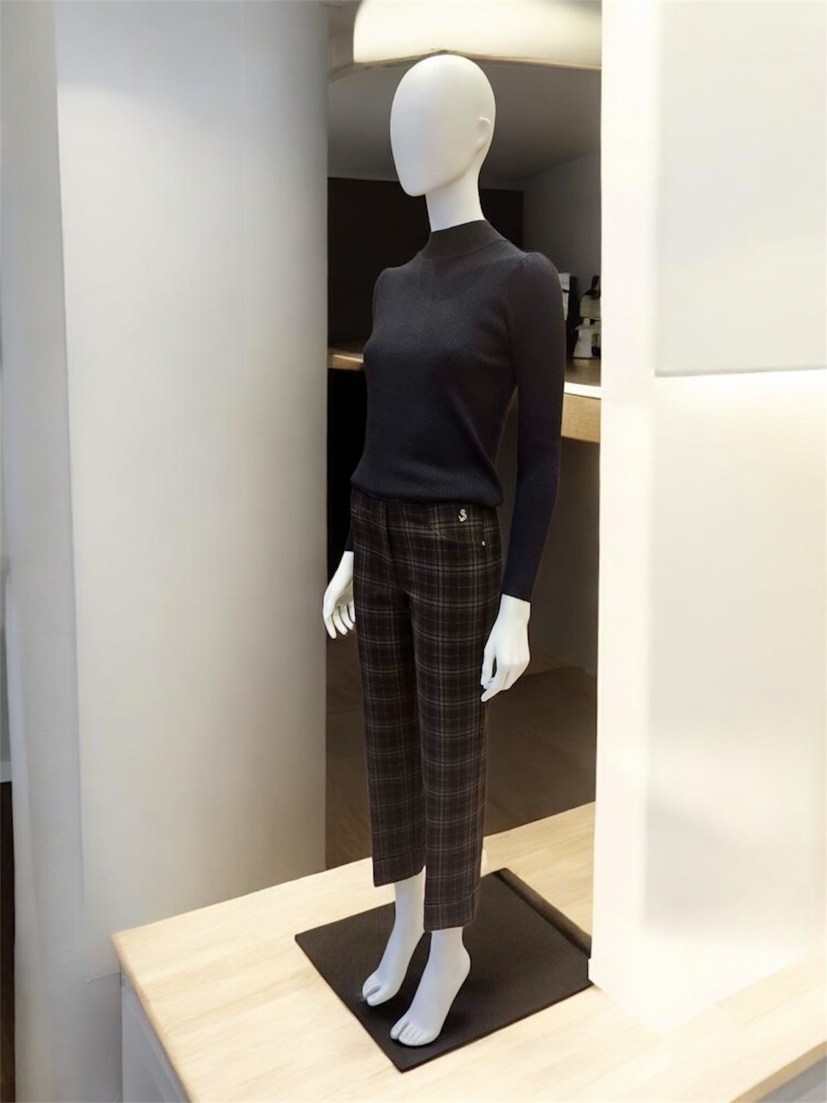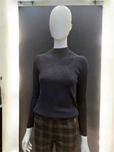 Suéter color negro de cuello ligeramente elevado y manga larga .