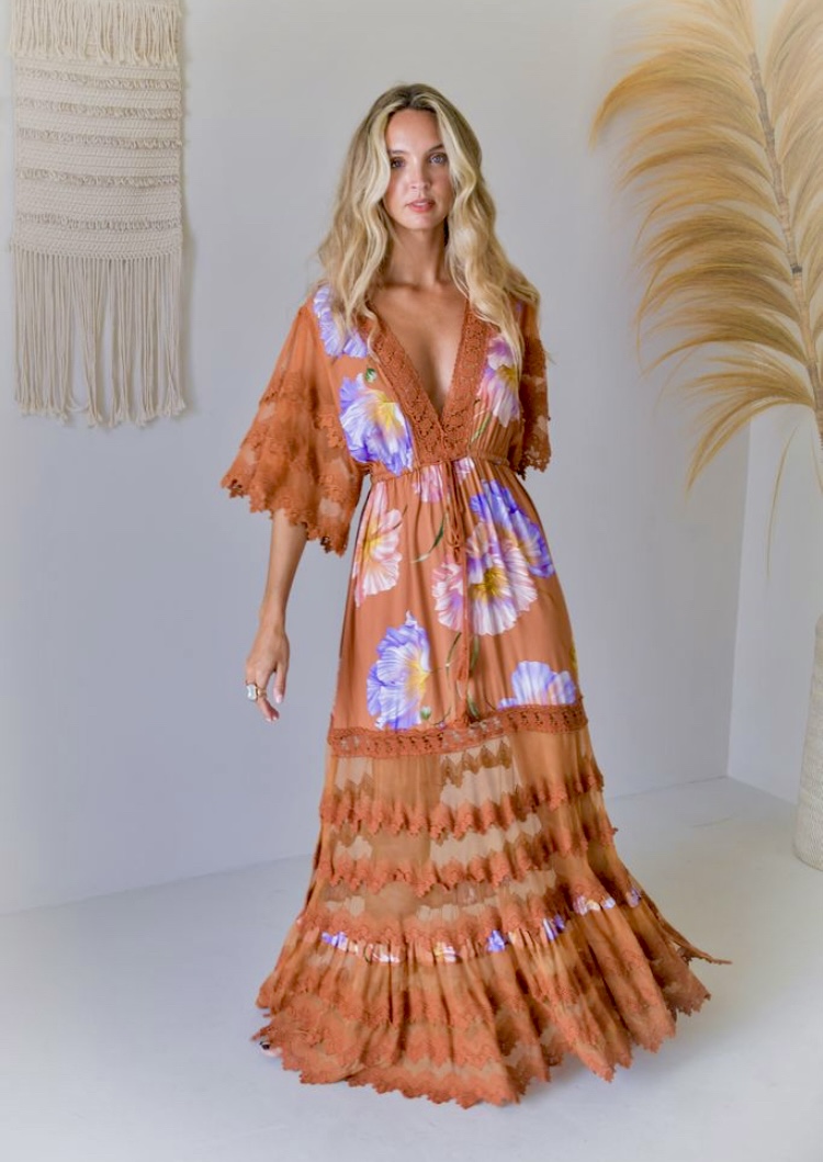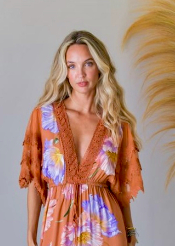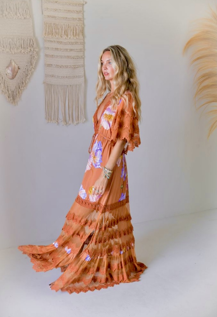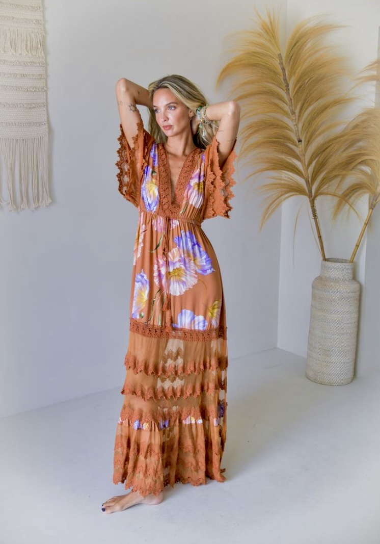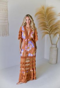 Vestido combinado en tul y rayon con escote en v. composición 100% rayon , lavado a mano agua fria.