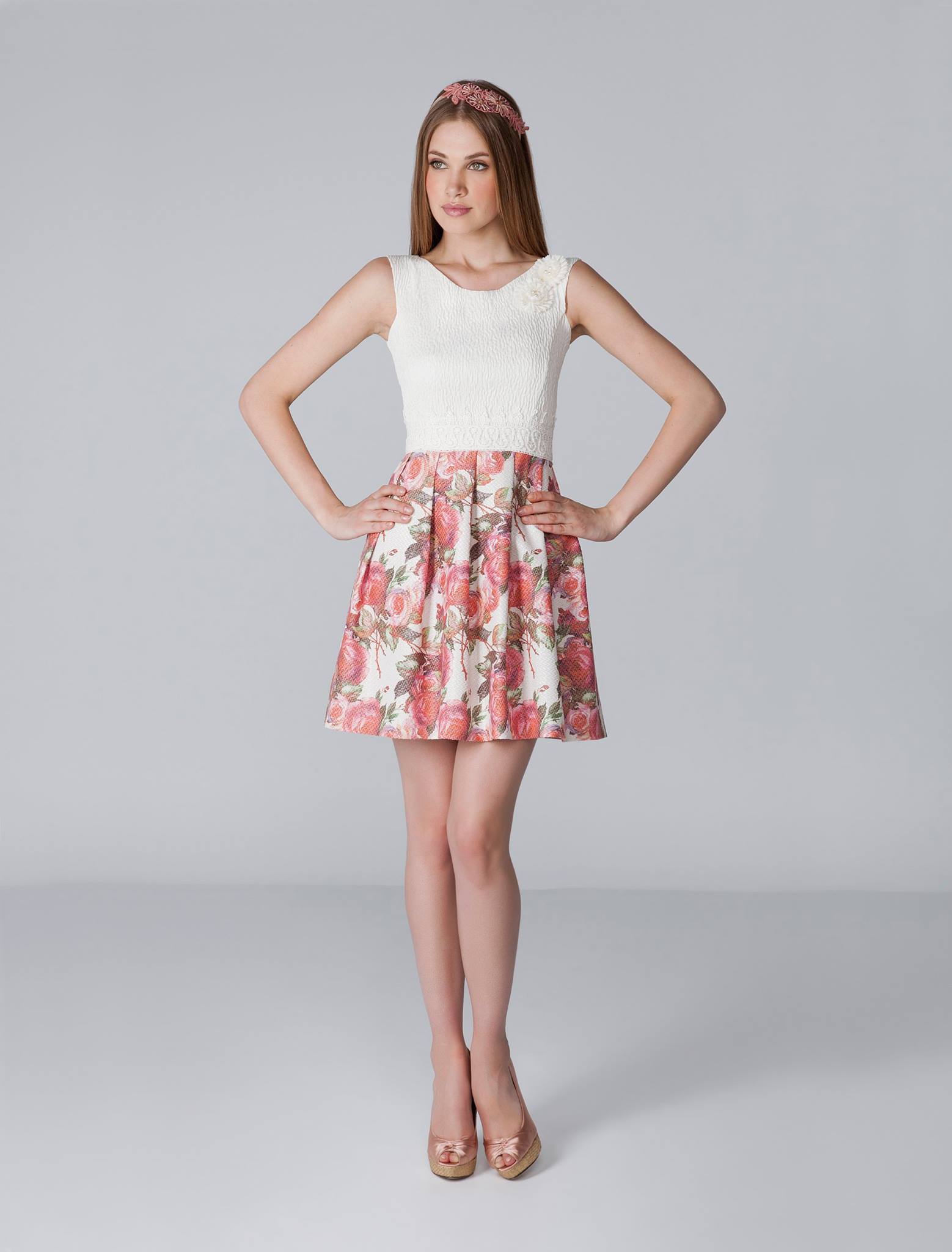 Vestido Olimara Rose. Composición Exterior 1: 54% Algodón, 40% Poliéster, 6% Fibra Metálica. Composición Exterior 2: 52% Poliéster, 31% Algodón, 15% Lurex, 2% Otras fibras. Composición Interior: 100% Poliéster. Lavado a mano.